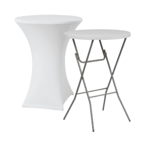 Alquiler Mesa alta cóctelPosibilidad de alquiler con o sin funda elásticaAlquiler Mesa rectangular para 6 u 8 personas (1,80mtrs x 0,74cm)Posibilidad de mantel blanco