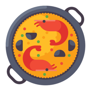 Ingredientes: gambas, calamares, mejillones, pollo, magro, pimiento verde y rojo, ajos, arroz y aceite de oliva virgen.